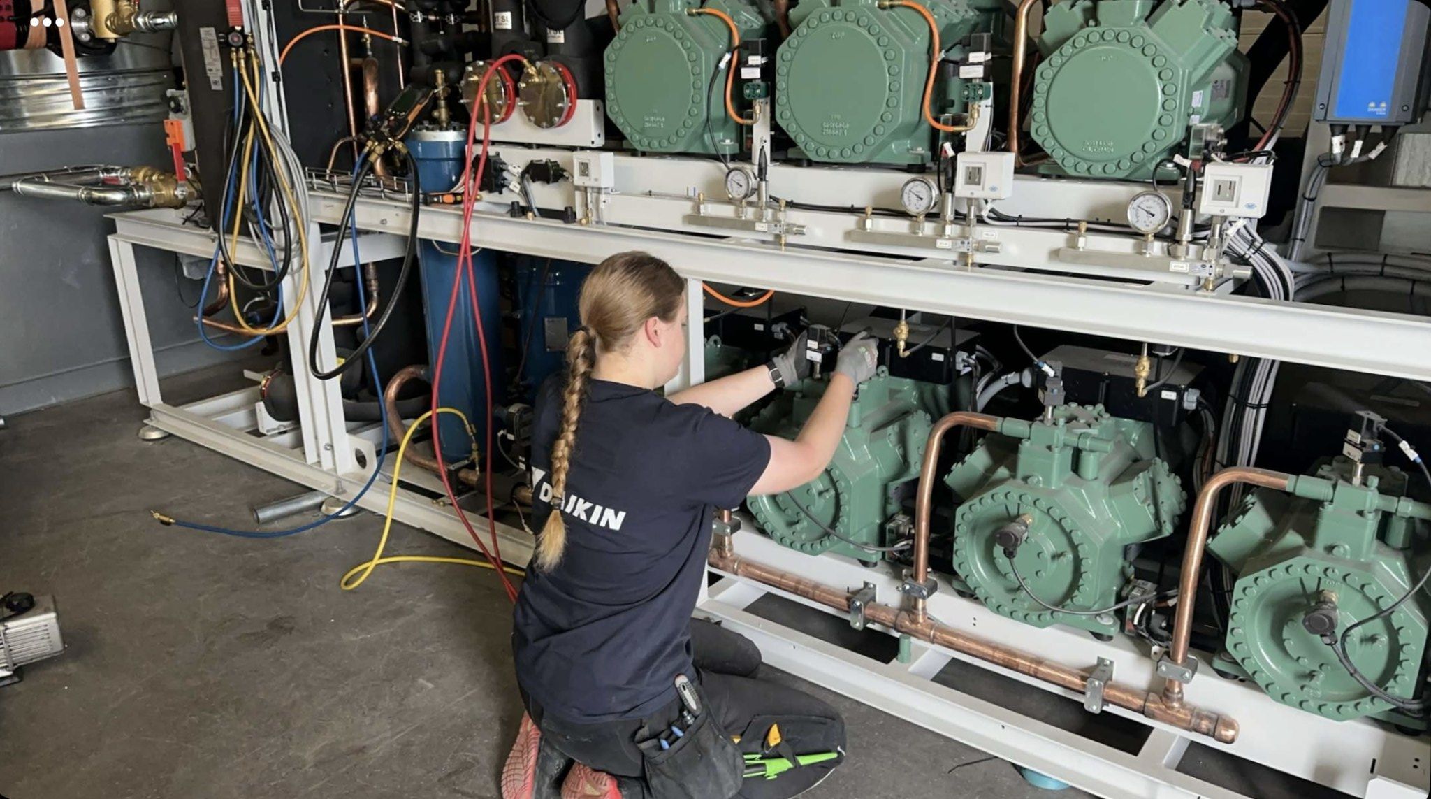 Hos Grønne Fok på Frosta har vi installert en R290 isvannsmaskin/varmepumpe på 114kW sammen med en Co2-kjølerigg på 286kW.